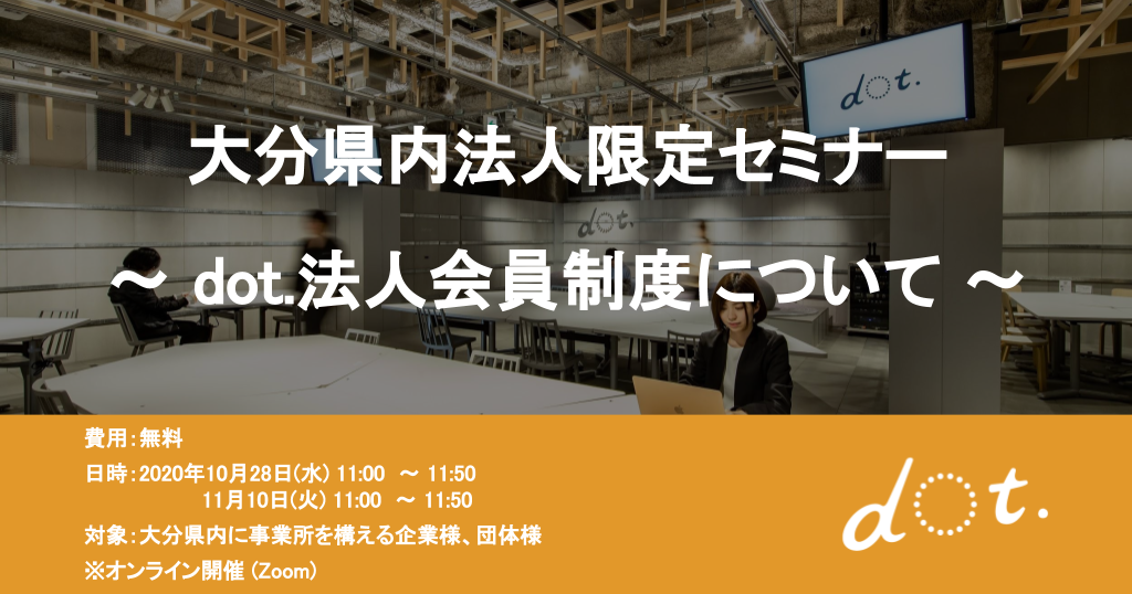 10/28(水)11/10(火) 大分県内法人限定セミナー 〜dot.法人会員制度について〜