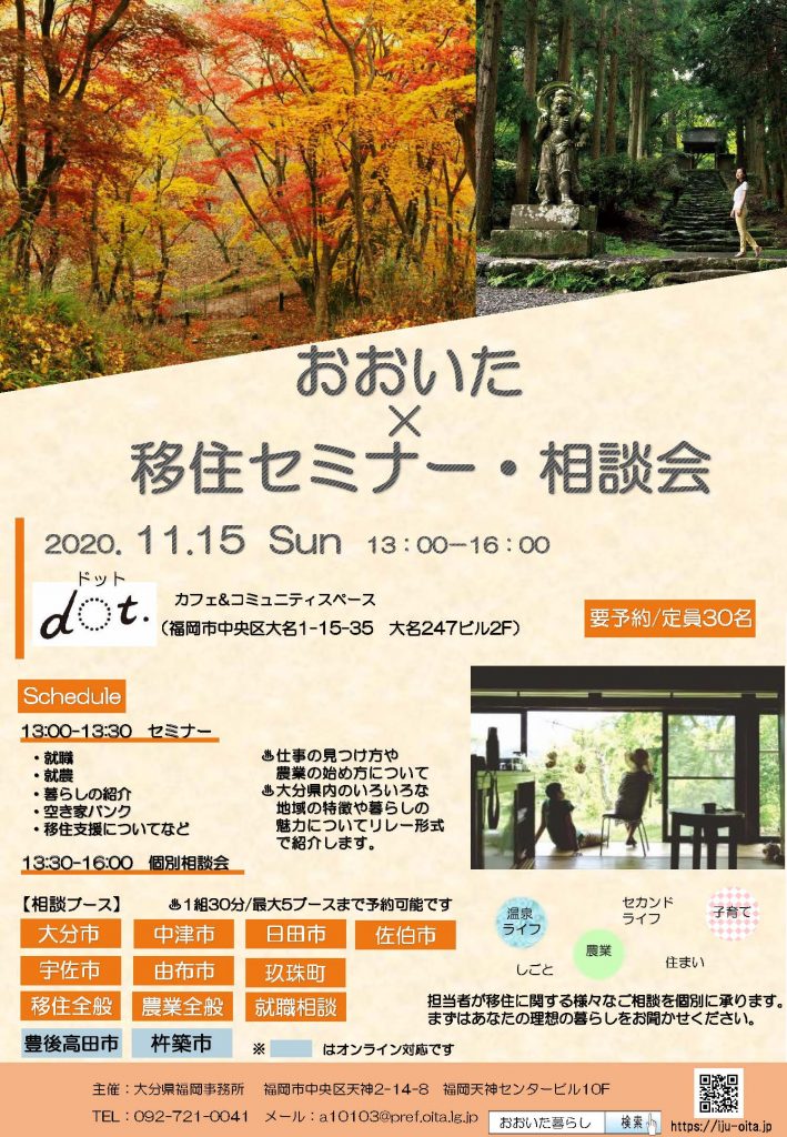 HOME お知らせ一覧 11/15(日)大分県移住セミナー・相談会「おおいた暮らし塾in福岡」開催のお知らせ