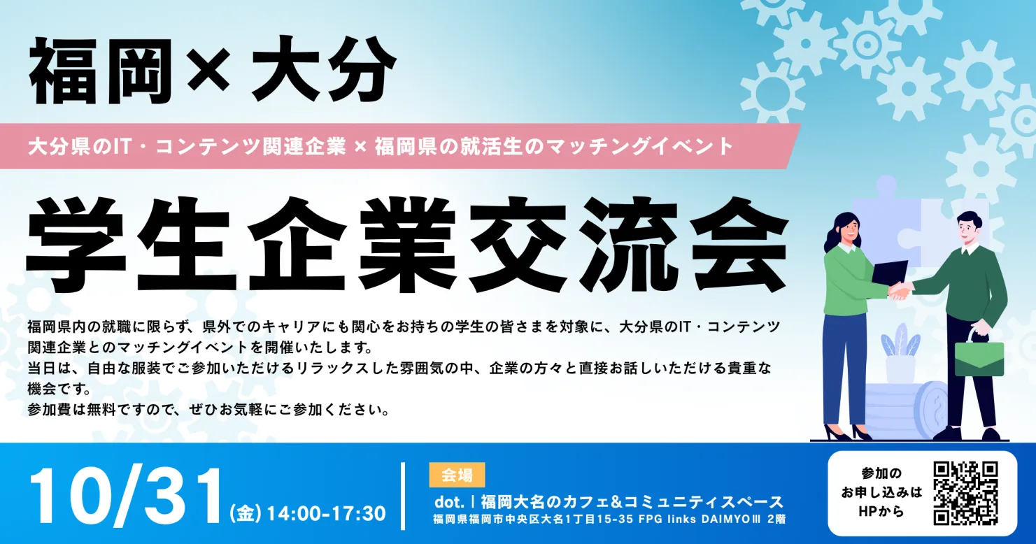大分県内のI T・コンテンツ関連企業と、福岡県の就活生が直接交流できるマッチングイベントを開催します!
