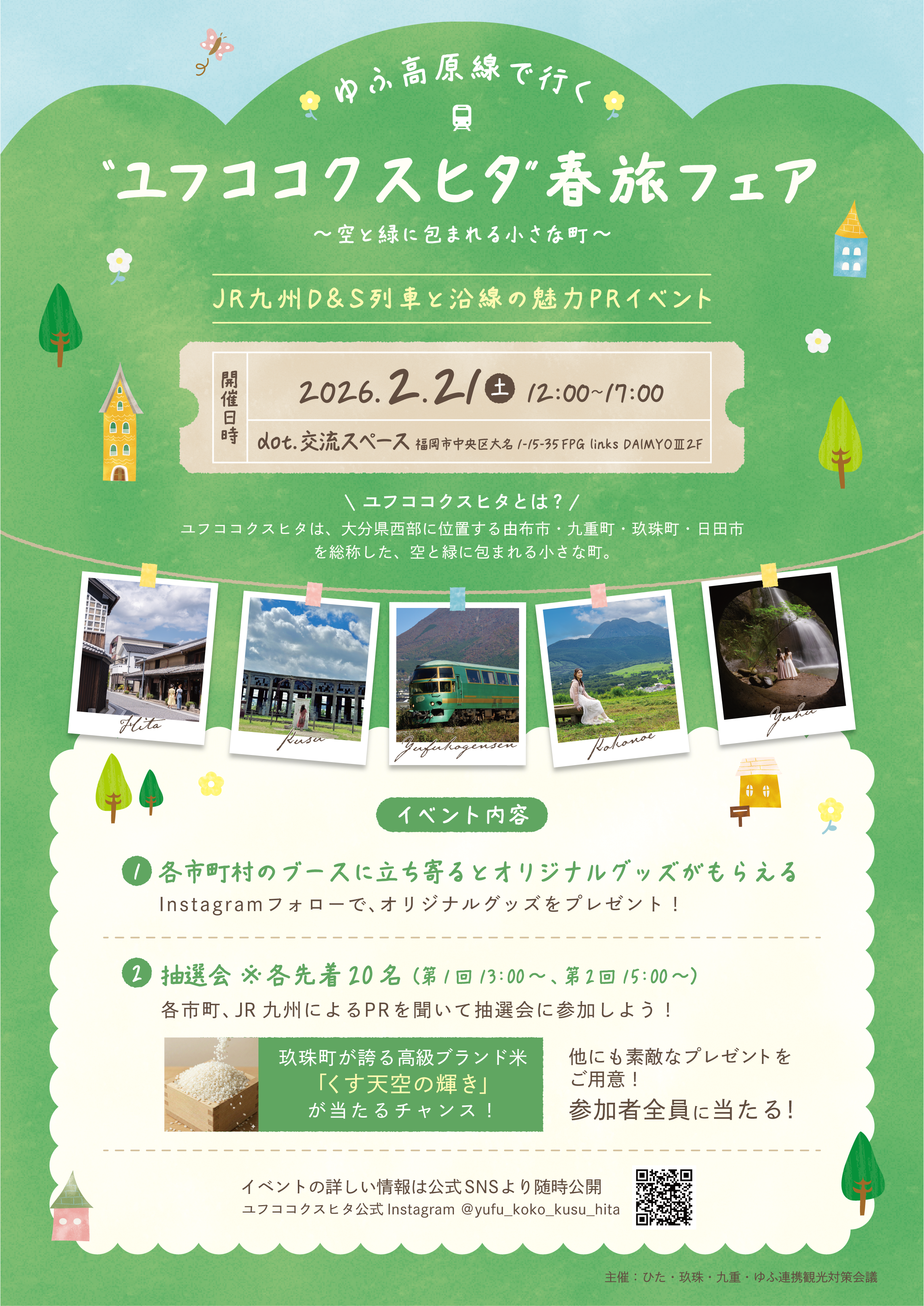 由布市、九重町、玖珠、日田の”ユフココクスヒタ”の魅力をギュッと知ることのできる特別な一日!