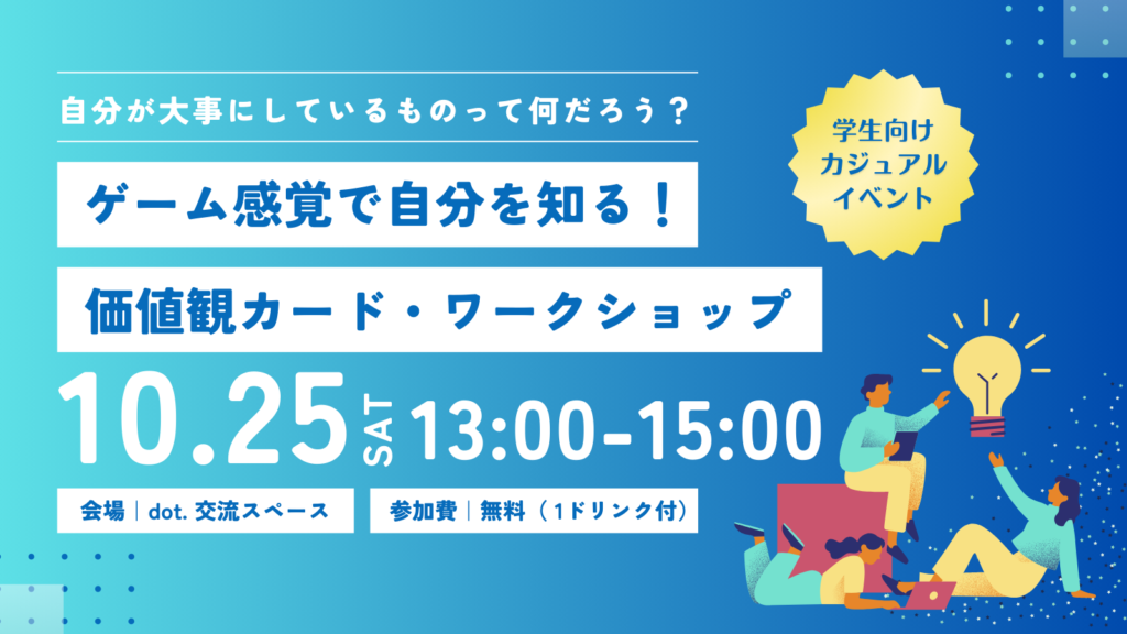 10/25(土)ゲーム感覚で自分 を知る!価値観カード‧ワークシ ョップ 開催のお知らせ