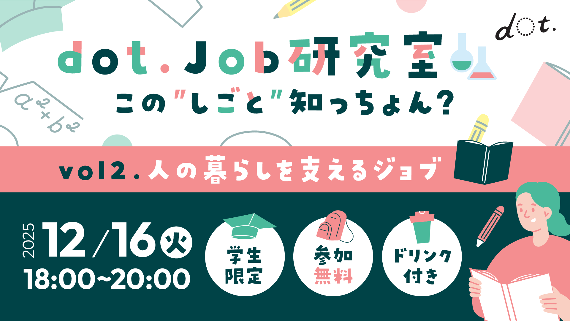 HOME お知らせ一覧 12/16(火)dot.Job研究室〜この”しごと”知っちょん?〜vol2.開催のお知らせ